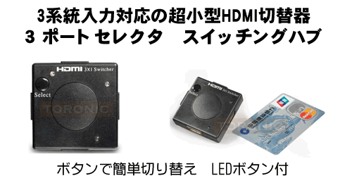 フルハイビジョン(ver.1.3b)対応!★3ポート搭載 HDMIセレクタ(AH-HD3S)ACアダプタ不要のバスパワー、HDCP不正コピー防止機能付き!ゲーム・ブルーレイプレーヤー等、HDMI端子を ![]() 価格: 1,850円 レビュー評価:0.0 レビュー数:0 お持ちのUSBケーブルをmicroUSBに変換するアダプタです。 商品の仕様 3ポート搭載 HDMIセレクタ プレイステーション3やBDレコーダーなど増え続けるHDMI機器の接続もこれで解決! ●1080p対応 HDMI1.3b対応 ●HDCP不正コピー防止機能 HDCP1.0/1.1対応 ●ACアダプタ不要のバスパワー動作 HDMIバスパワーで動作しますのでHDMLケーブル以外の余計な配線は必要ありません。 ●接続状態がわかるLEDライト搭載 何番の入力端子の映像を出力しているか一目でわかるLEDライトを搭載。 ■メーカー:トロニック ■商品状態:英語パッケージ品 ■保証期間:1ヶ月 インラ Supported by 楽天ウェブサービス |